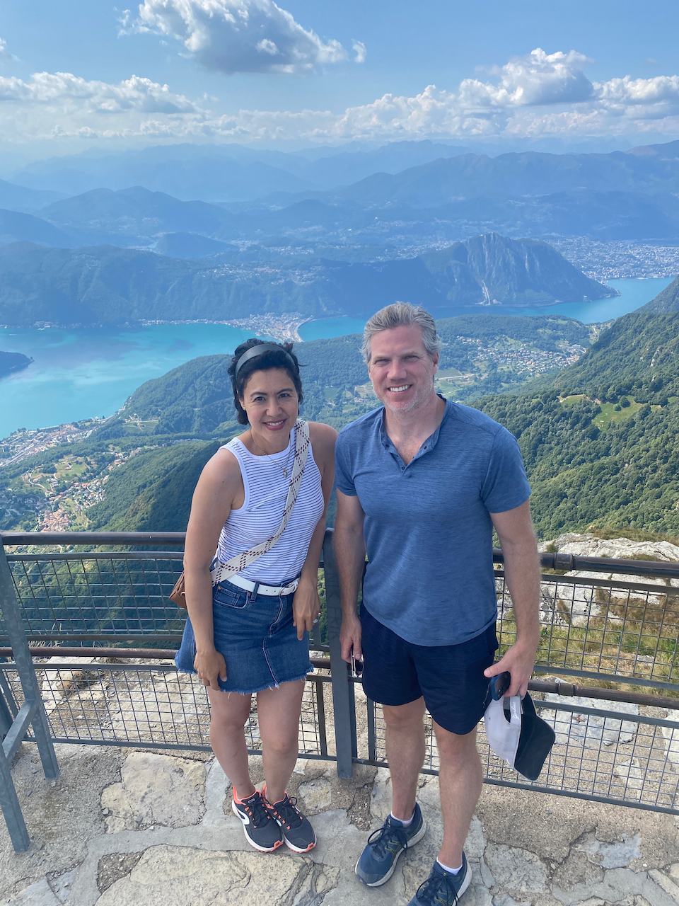 At the summit of our Mt. Generoso hike: Lake Como & Lake Lugano in the background